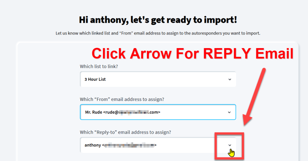 Now choose THE SAME EMAIL address for the “Repy-to” email address:
