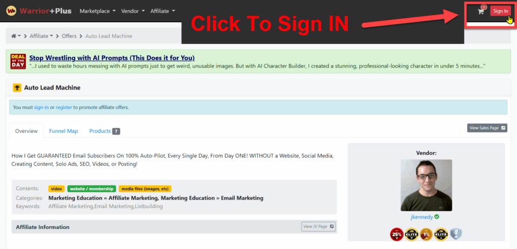 If you’re not logged in you will see the page shown below but you must sign in to see your affiliate link
