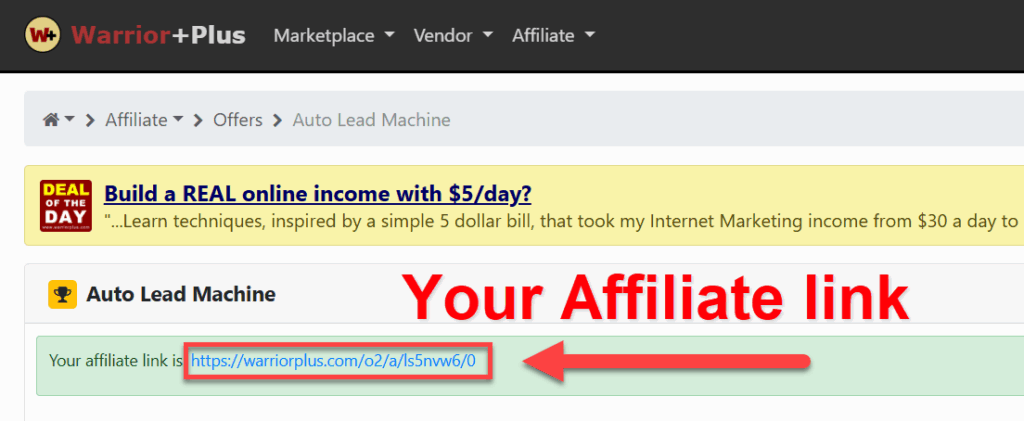 All we are doing here is getting your affiliate link for the front-end offer (the same offer showing you how to build your list).