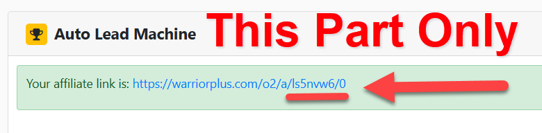 You will NOT be using this entire affiliate link ONLY the last part with YOUR Unique ID after: